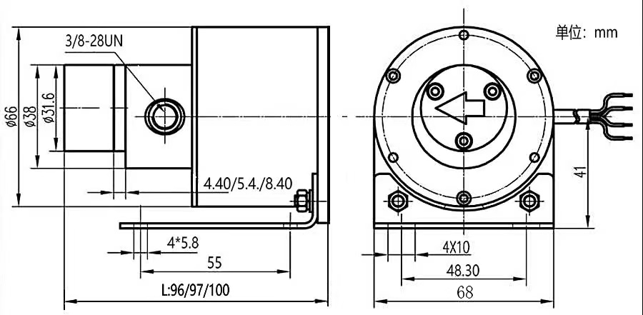 注:配4mm系列泵頭時,總長96mm,配5mm系列泵頭時,總長97mm,配8mm系列泵頭時,總長100mm.