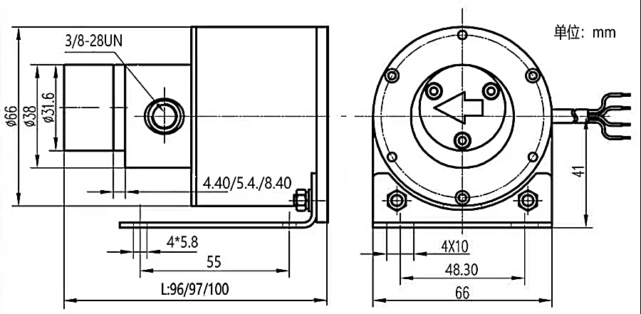 注:配4mm系列泵頭時,總長96mm,配5mm系列泵頭時,總長97mm,配8mm系列泵頭時,總長100mm.